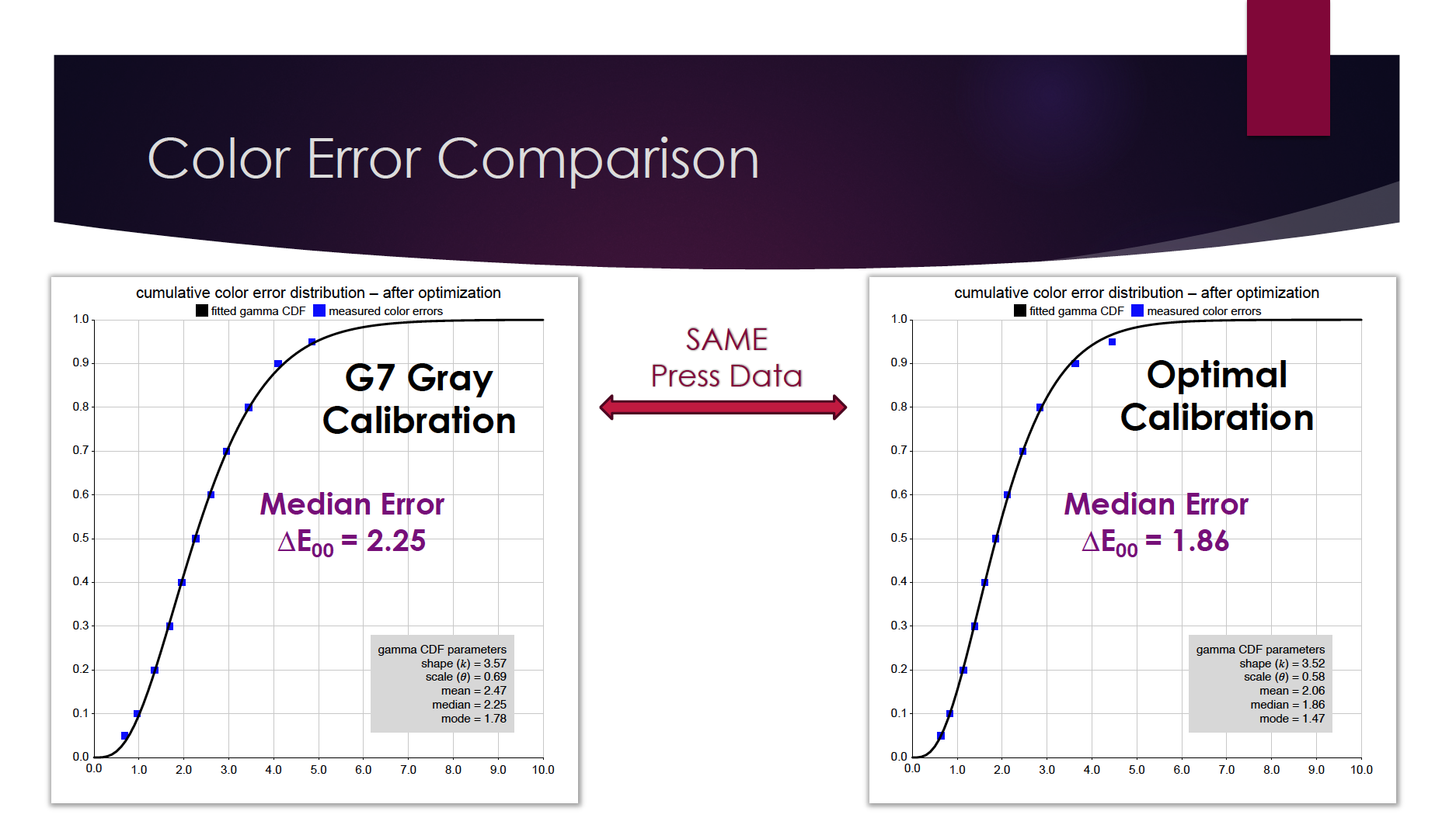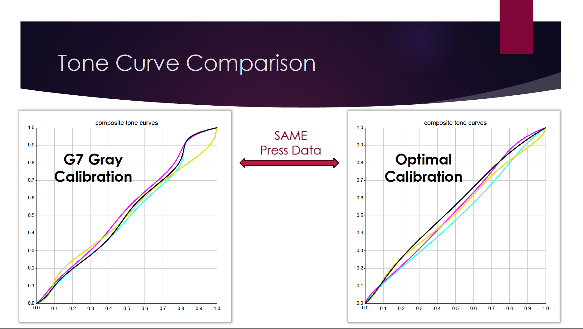 - Create Optimal calibration curves for press matches to G7 grays, GRACoL, or any characterized reference printing condition (CRPC.)